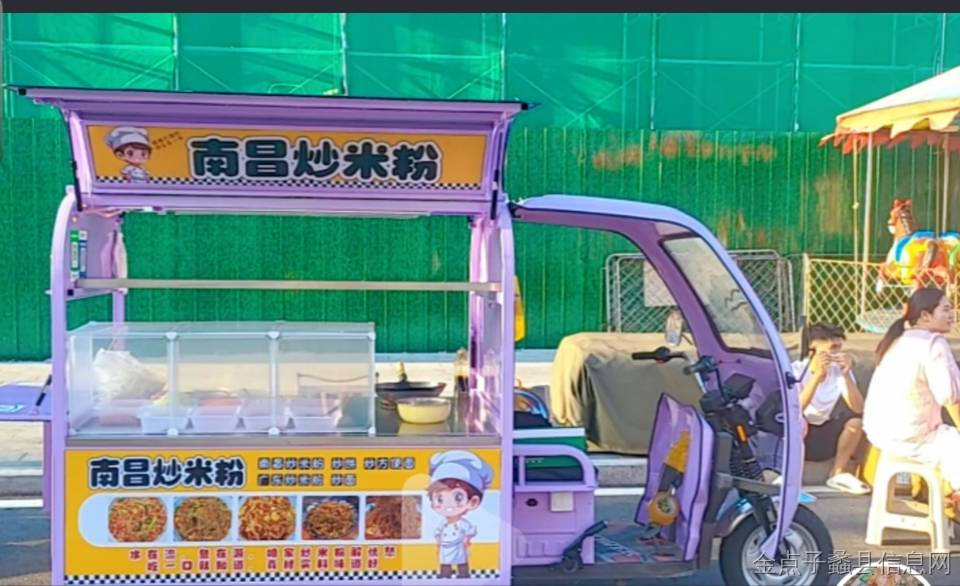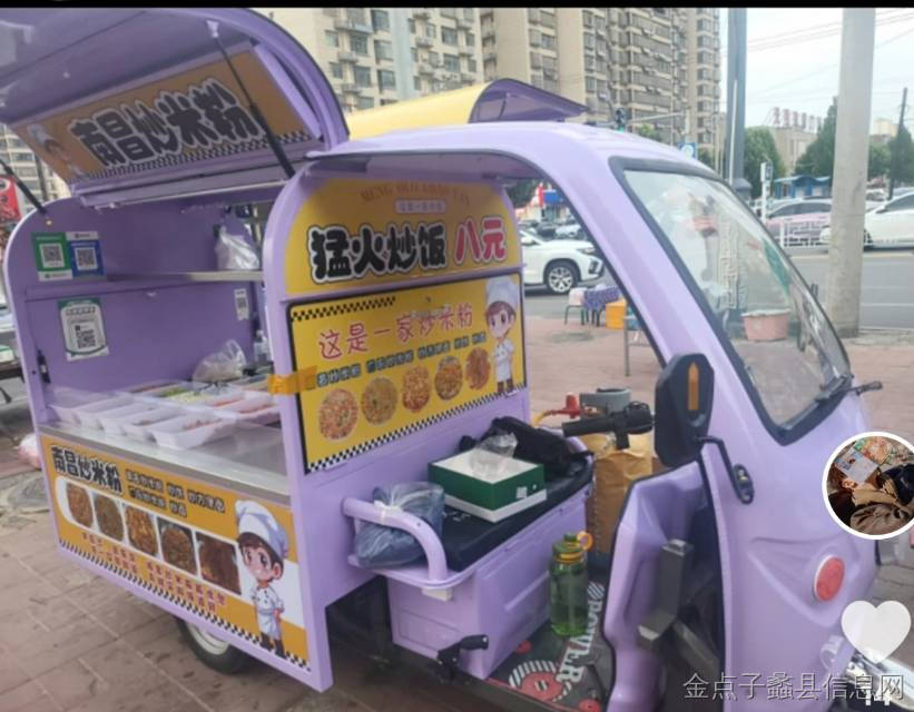 紫色三轮餐车,带鸥翼门,空间大,操作台宽敞,适合做炒米粉、炒饭、小吃等生意,摆摊创业很方便!