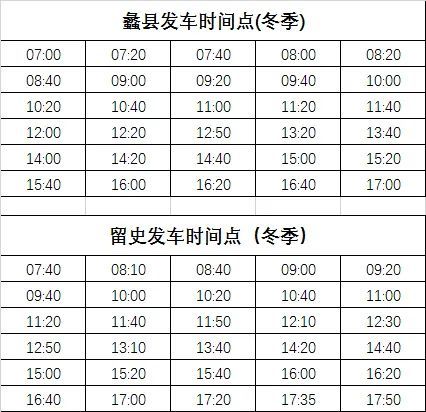 注:留史发车时间20-30分钟/车次
